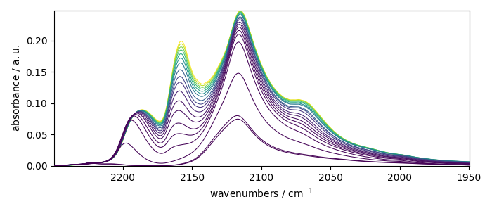 In this example, we perform the 2D IRIS analysis of CO adsorption on a sulfide catalyst.