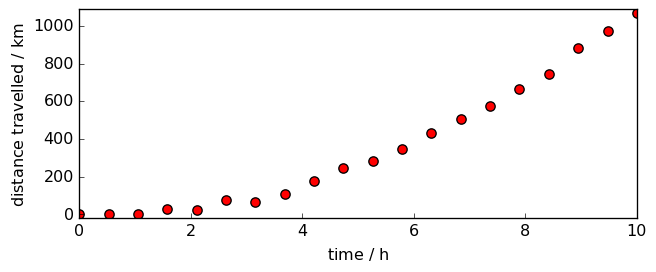 <_Axes: xlabel='time $\\mathrm{/\\ \\mathrm{h}}$', ylabel='distance travelled $\\mathrm{/\\ \\mathrm{km}}$'>