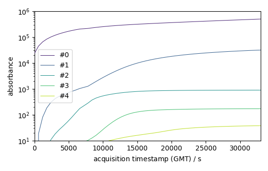 Fit transform : Get the concentration in too commands The number of desired components can be passed to the EFA model, followed by the fit_transform method: