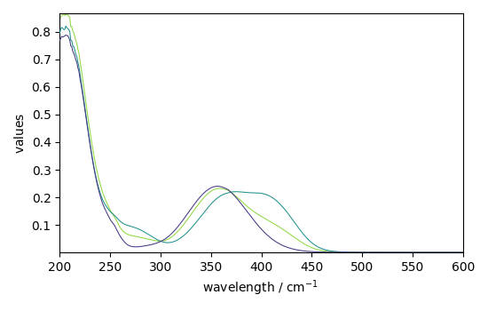 In this example, we perform the MCR ALS optimization of the UV-vis of spectra resulting