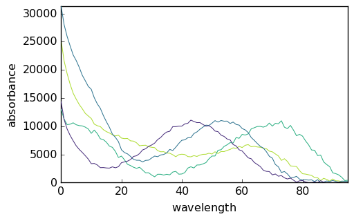 X.set_coordtitles(y="elution time", x="wavelength")