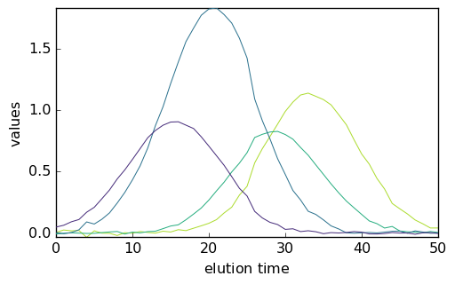 X2.set_coordtitles(y="elution time", x="wavelength")