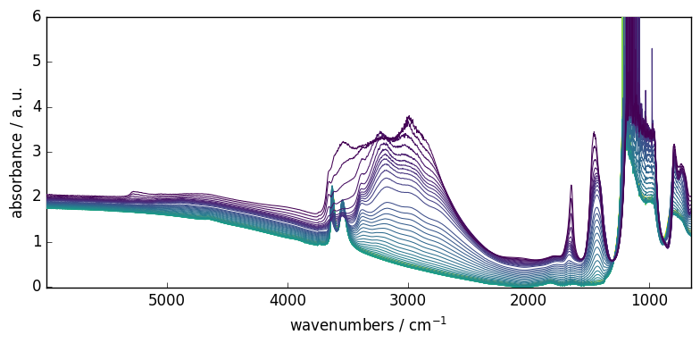 Then we load a FTIR series of spectra on which we will demonstrate theprocessor capabilities