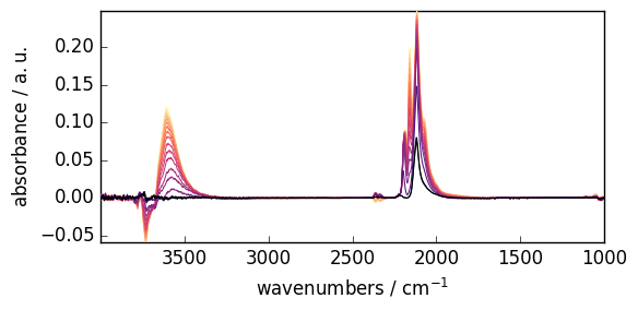 X = scp.read_omnic("irdata/CO@Mo_Al2O3.SPG", description="CO adsorption, diff spectra")
